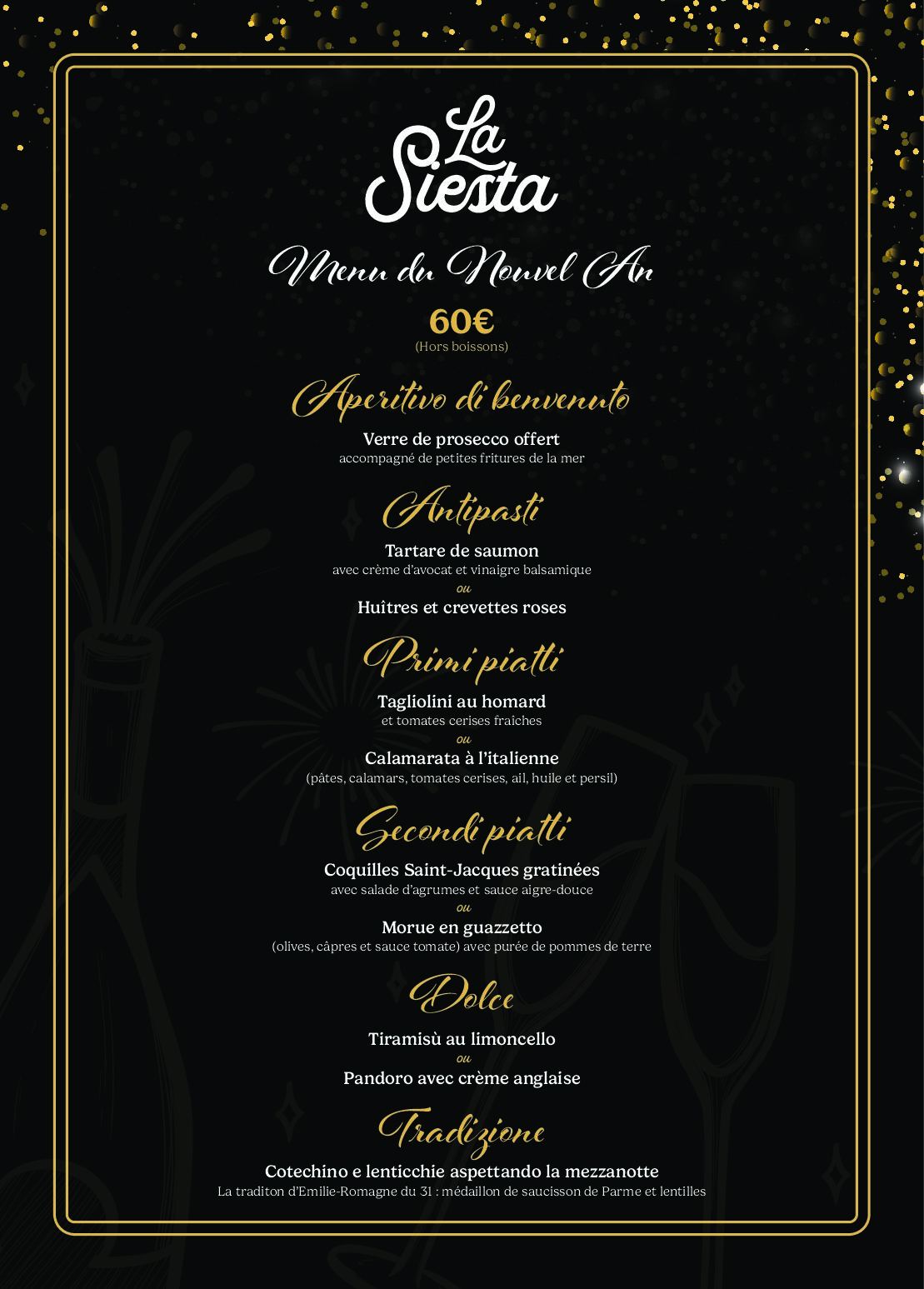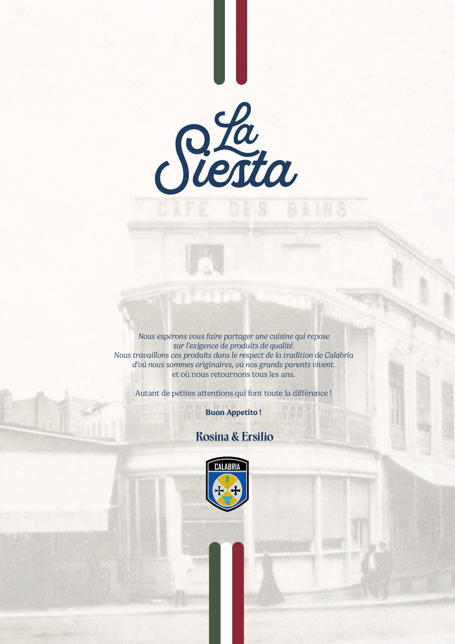 Idéalement située sur le port de Royan, à deux pas du centre-ville, La Siesta vous accueille dans un cadre chaleureux et convivial, avec une vue panoramique exceptionnelle sur l’océan. Notre restaurant met à l’honneur la véritable cuisine italienne, généreuse et authentique, inspirée des saveurs ensoleillées de la Méditerranée.