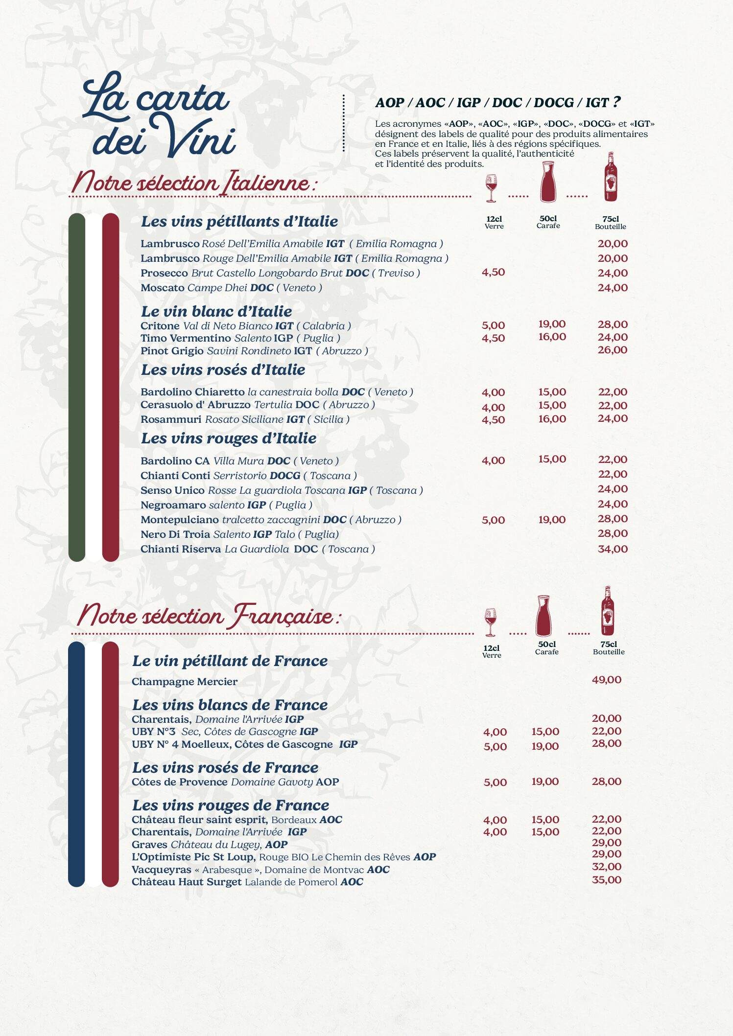 Nous sélectionnons avec soin des produits italiens de première qualité importés directement de producteurs passionnés d’Italie. Chaque plat est préparé avec amour pour vous faire voyager au cœur des traditions culinaires italiennes, des antipasti aux desserts maison.