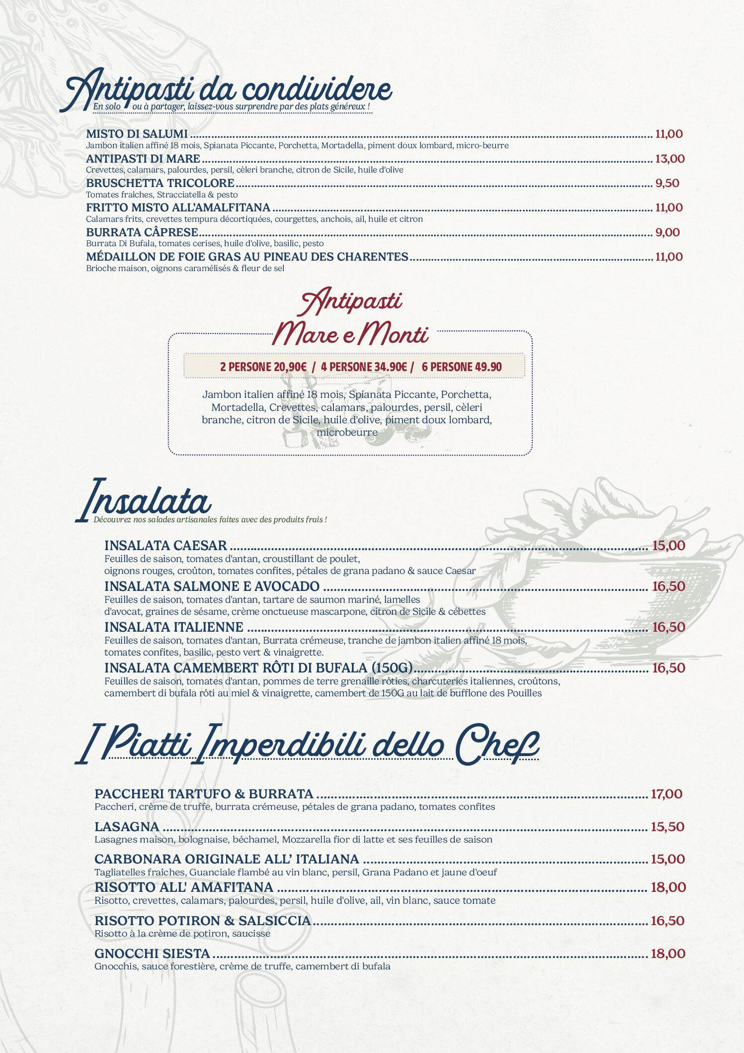 Venez savourer l’Italie à Royan, dans une ambiance conviviale, où la passion pour la cuisine italienne se partage autour de belles assiettes généreuses et d’un accueil chaleureux.